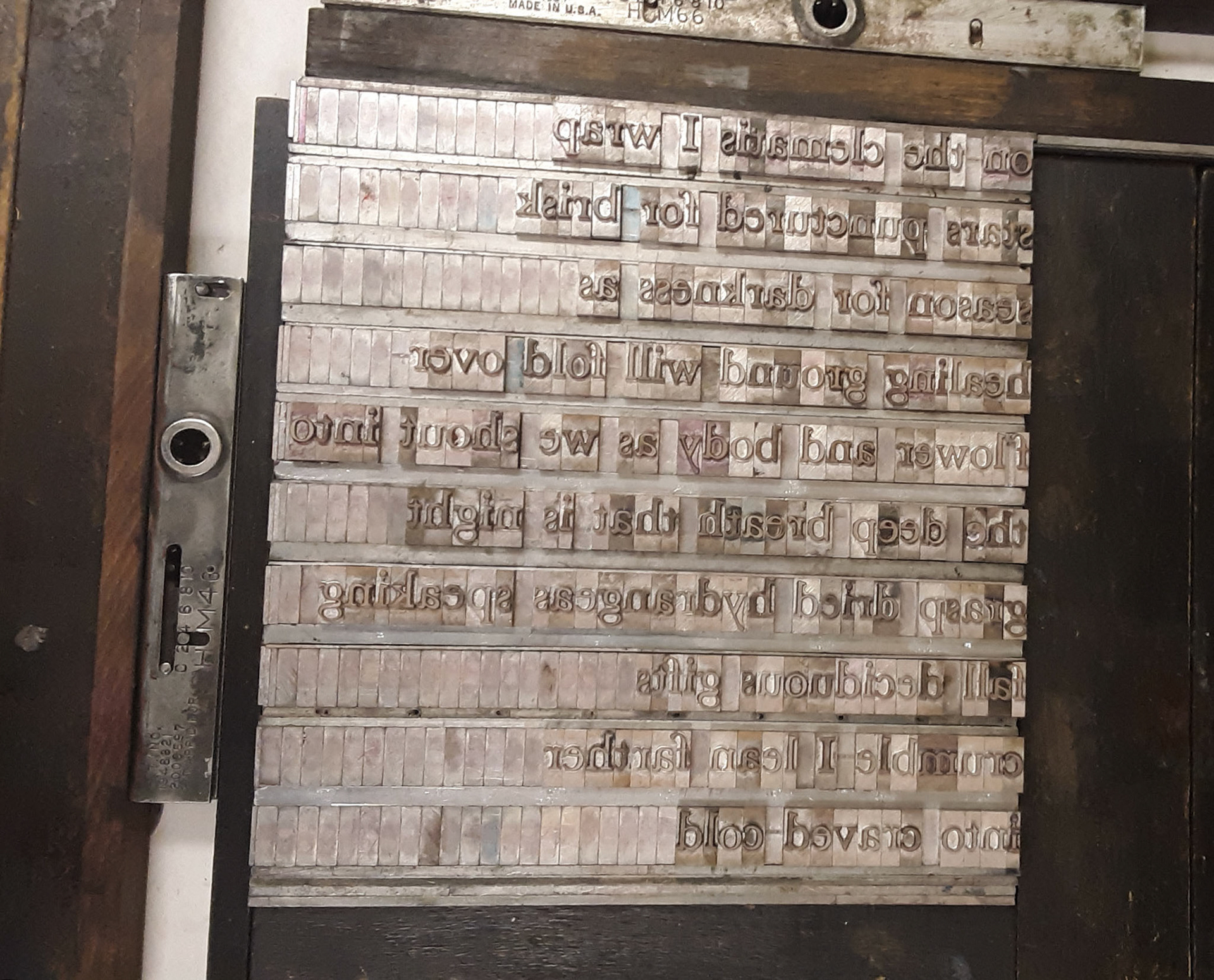 Printed in the Walter Feldman Book Arts Studio at Brown University