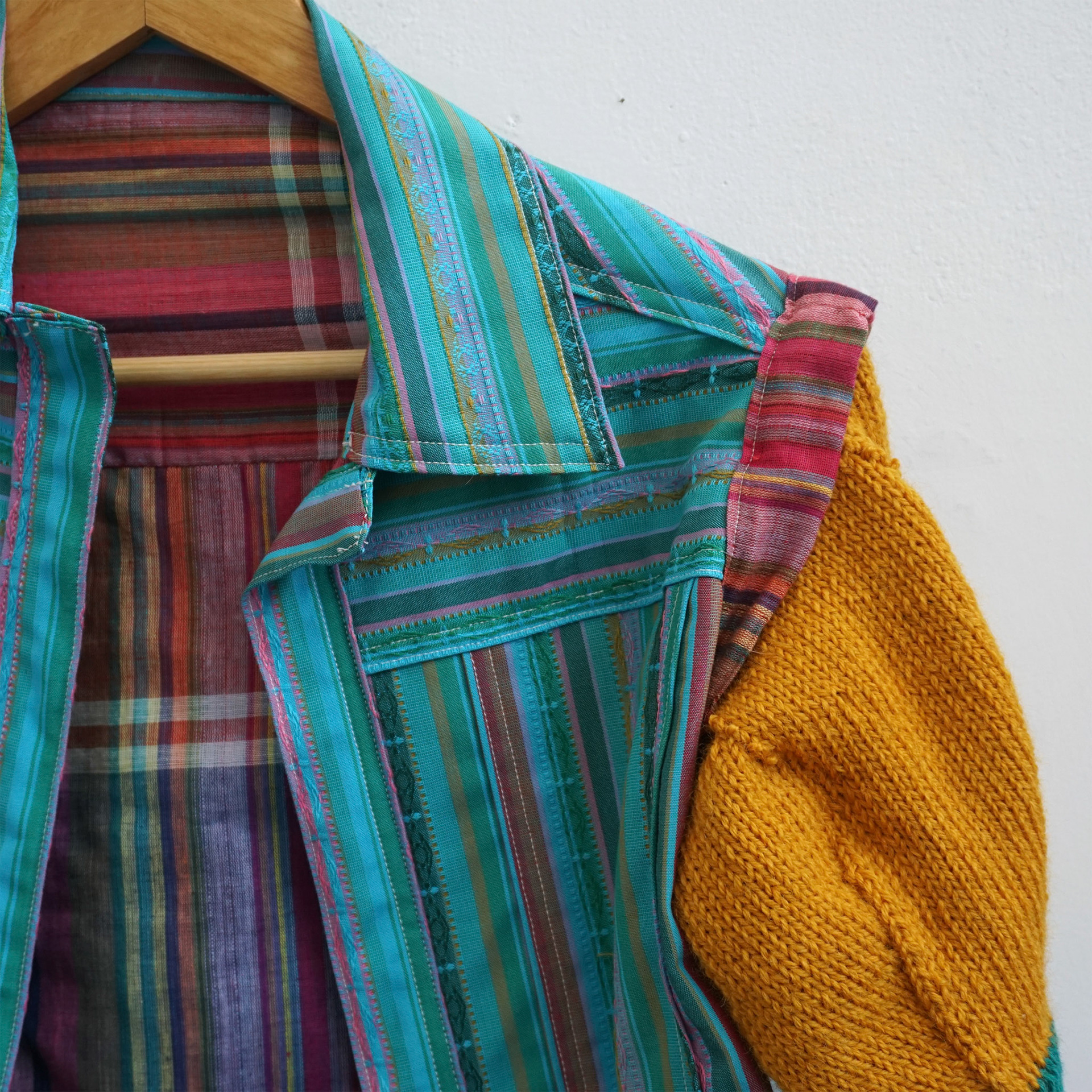 Handknit sleeves, machine sewn vest. I sourced the fabric from my great grandmother.